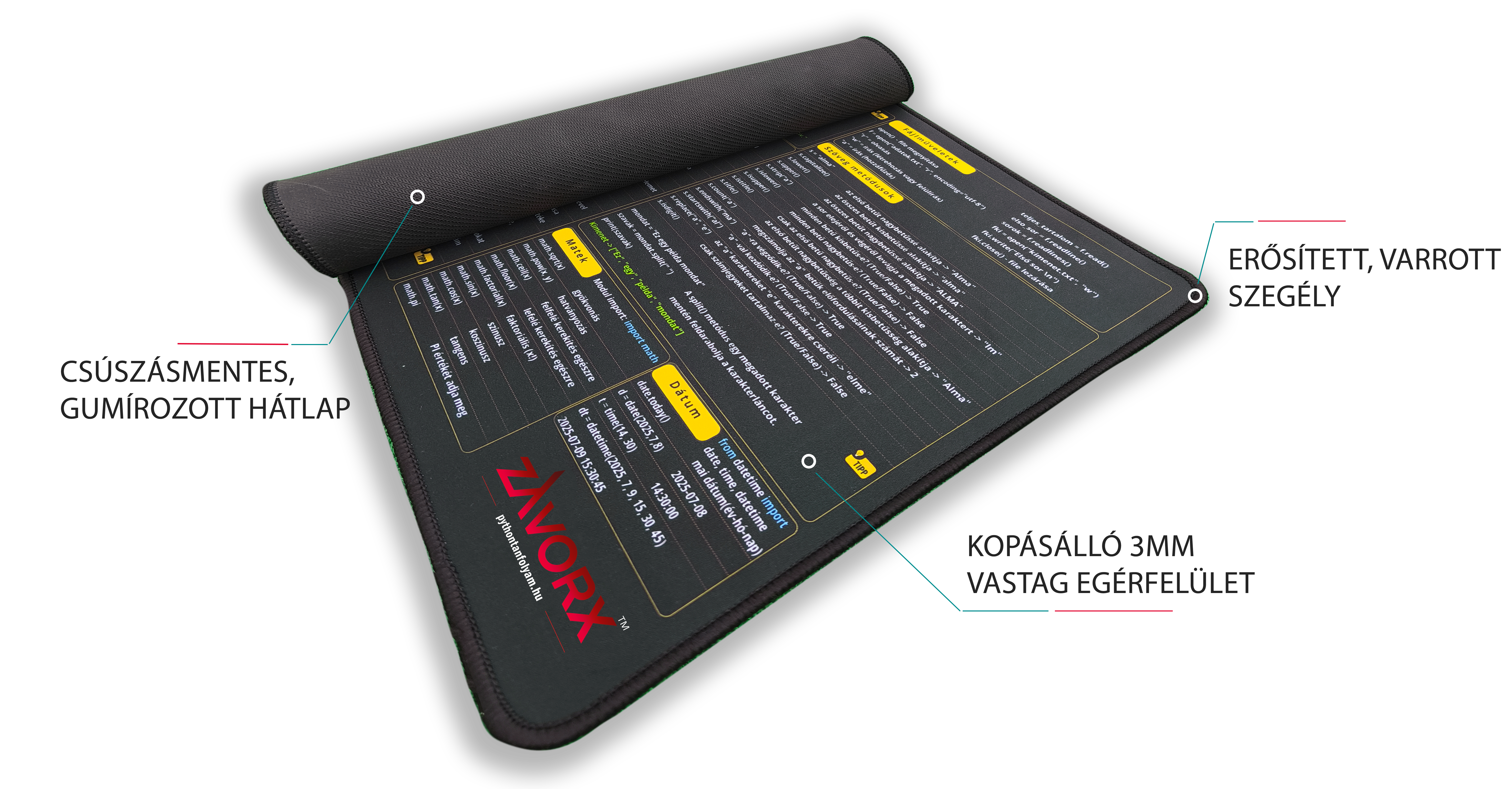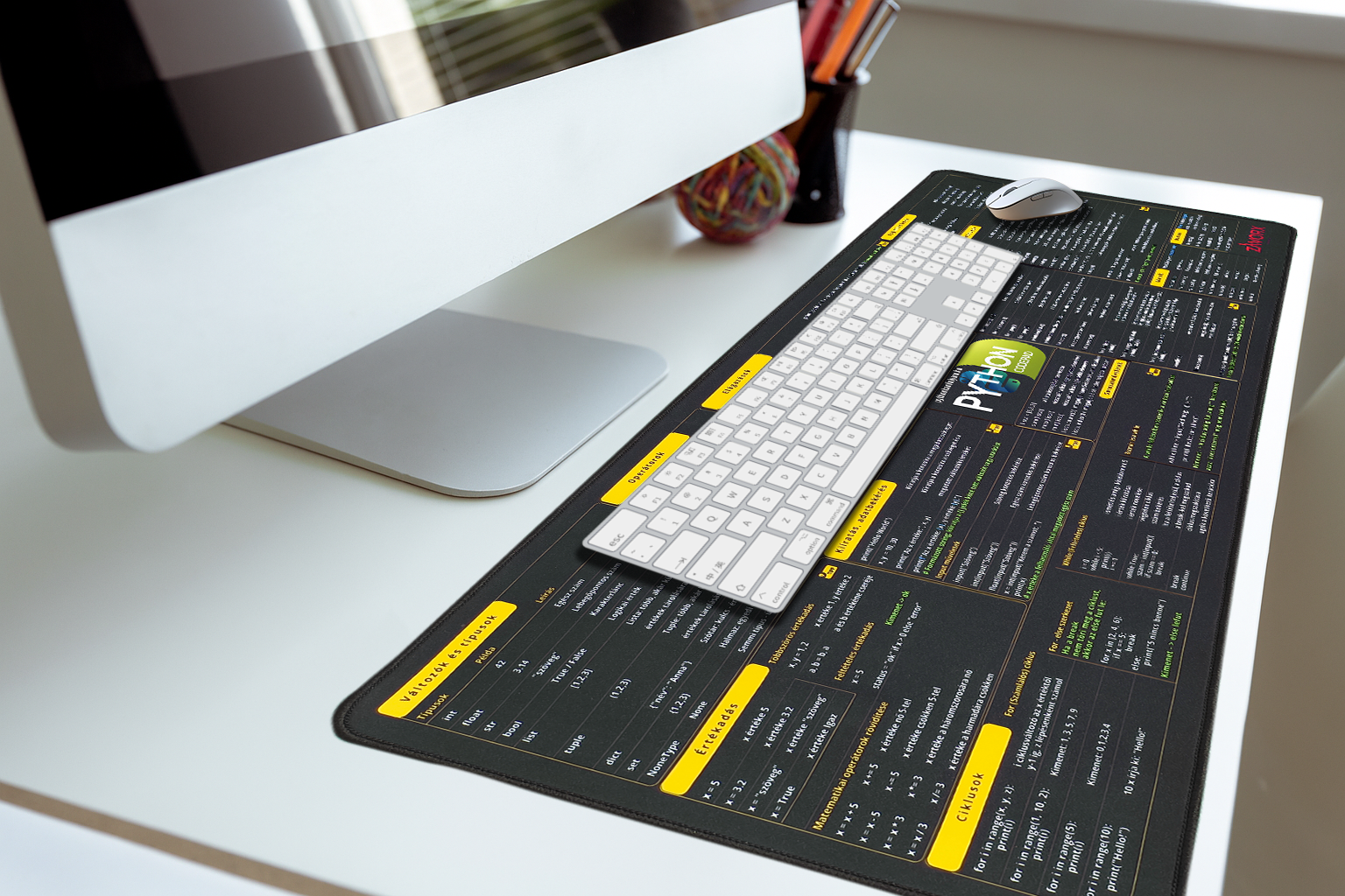 Python tanfolyam választása esetén megajándékozlak egy magyar nyelvű XXL méretű Python egérpaddal. Bármelyik Python tanfolyam megrendelését követően ingyen csomagpontra küldöm neked!